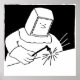 Bild av en smed eller svetsare som svetsar plåt. Illustrationen visar en svetsare med skyddsmaskör.