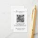 Minimalistisk och elegant svart-vit design på vit bakgrund, med anpassningsbar text i modernt teckensnitt. För att generera en QR-kod anger du helt enkelt webbadressen till din smekmånadsregistreringssida i den avsedda rutan. När gäster skannar QR-koden med sin smartphone dirigeras de till din smekmånadsregistreringssida där de kan bidra till din smekmånadsfond.