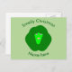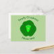 Det här vykortet har en söt tecknad av en grönt, en brusmussla med stort öga och ett leende. Den har mörk grönt löv utanför och en grönt inuti.