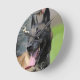 Det här är ett foto av en belgisk malinoisliknande hund som leker.