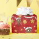 Papper julomslutning med en illustration av att lycklig leende afrikansk man med Jultomten; med redigerbar textmall; juldesign med skarvfri röd helgdagar med stjärnor