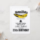Grafisk konst: Banana orienterad för att bilda ett leende + liten text mellan parenteser: (är bra för hälsa). Perfekt för alla som behållor le år efter år. Utformning på rundad inbjudan med platta kort med texter för 25:e Födelsedagsfesten som du vill anpassa. Du kan enkelt ändra text (teckensnitt, färg, storlek och placering) genom att klicka på anpassningsknappen. Den här inbjudan presenteras med en naturlig papper "Premium Kraft" och miljövänlig, men du kan ändra det här alternativet. Matchande födelsedag Spara datum, födelsedagsgäst bokar (hård täckmantel och spiral bärbar dator), papper födelsedapkin, papper plåt med mera..