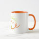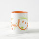 Start your day with a cheerful touch using this combo mug featuring a playful “Smile” brush-style illustration accented with leafy and floral details. The bright white exterior highlights the artwork beautifully, while the colored rim and handle add a fun pop of contrast. Perfect for coffee, tea, or gifting, this mug brings positive, creative energy to every sip.