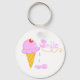 Nyckelkedja för Smile Ice Cream. Anpassadets nyckelkedja har en söt smälter glasskon med en körsbär på ovansidan och ord leende i rosa brev.