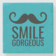 =============== OM DENNA KONSTRUKTION =============== A mustasch och ord SMILE GORGEOUS på ALLA FÄRG-bakgrunder - vi använde friblått - på dessa marmorunderlägg. Klicka på ANPASSA om du vill ändra bakgrunden till färg, ÄNDRA vårt ordspråk, LÄGG TILL ditt namn, initialer eller någon annan ordalydelse för att anpassa dem för dig själv eller ge som gåva. Perfekt för födelsedagspresent och annat. Finns på fler produkter