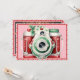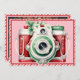 Julkortet i roligt har en liten vintage kamera. Kortets baksida har ett foto och en hälsning som säger "önskar dig en jul i bild perfekten". Text på baksidan kan redigeras.