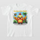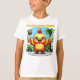 En chick för glatt gult med starkt ögon och rosyska kinder sprider sitt vingar med upphetsning. En vänligt sinnad bina i närheten. Lush grönt handflatan och blå himmel skapar en varm tropisk känsla. Uttrycket "Smiles take flight" i gult brev förstärker den trevliga stämningen.