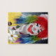 En lycklig som leker clown i smart primär färg kommer att lätta på sinnesstämningen.
