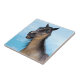 3D digital rendering av en söt leende grulla häst med blå ögon mot blå himmel bakgrund. Perfektens gåva till alla som kärlek roligt och skrattar åt