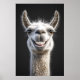 En mycket detaljerad närhet till ett leende vitt lampa med uttryckligt ögon och ett vänligt, komiskt uttryck mot en mörk bakgrund.