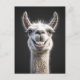 En mycket detaljerad närhet till ett leende vitt lampa med uttryckligt ögon och ett vänligt, komiskt uttryck mot en mörk bakgrund.
