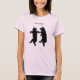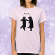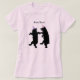 This tee shirt has two smiling black bears in silhouette form dancing together wearing festive striped pink and purple party hats with gold trim. Customise your text with the template.