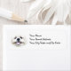 Shih Tzu ansikte med ett stort leende som svimmade på bakgrunden till fotoreturadressetiketten
