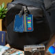 Färgfull lelektextillustration med rand dekoration på blå bakgrund