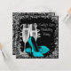 Sminkningshöga klackar Svart och turkos födelsedag Inbjudningar