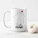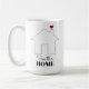Coffee mug featuring the drawing of a house with a heart above its chimney and "Smith's HOME" underneath the house. All the properties of the design components (e.g., its fill and border color, size and orientation) can be customized. To simply change "Smith's" and HOME, choose "Personalise this design" and make your changes. To make more changes, follow the steps below: