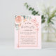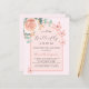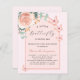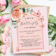 En bakgrund ro guld med guld och rosa ro. Dekorerad med en blommigt för guld och rosa, blomma från ro, vattenfärgad eukalyptus greenery och butterflies i grönt. Anpassa och lägg till namn i mamma för närmare uppgifter och party. En liten fjäril är på väg. Bakåt: ro guld, färg. 1 lakan = 1 inbjudan tryckt kant till kant.