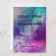 För paret vars kärlek-historia är skriven bland stjärnorna...En galaxisk tematisk bröllopsinbjudan som säkert fångar allas öga! Textinformation är anpassade och finns över en blankstegsbakgrund i lila, blått, grönt, rosa och vitt.