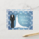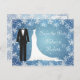 Smoking och klänning mot en blå snöflingor bakgrund Bröllop Spara datum postkort