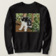 En original- vattenfärg av en smokingkatt på en svart tröja