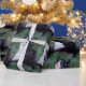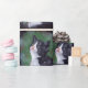 Smokingkatt som tittar upp på snö, olje- presentpapper