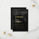 En elegant mjuk, rök, svart, färgad bakgrundsinbjudan Spara datum, ange med ett modernt guld färg-tjock serif-lägre fodral-teckensnitt för det första namnen, och ett tunt fodral sans serif för detaljerna. Den heltäckande svarta baksidan av inbjudan har dina efternamn i samma tunna övre fodral-teckensnitt med en tjock serif-teckensnittsampersand däremellan.
