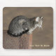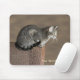 Ett rökigt grått tabby katt som gick på kant i en stol mot neutraltens bakgrund. Anpassa genom att lägga till egen text. Du kan ändra både teckensnitt och text färg.