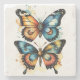Två fjärilar på ett skickligt sätt i luft, deras känsliga vingar som visar ett dynamiskt mönster om färg. Den ena fladderar försiktigt nära en blomma som blommar medan den andra blöder något ovanför, och blöder i det varma solljuset. Bakgrunden är en oskärpa av lush grey, som lägger till djup i scenen serene och picturesque. Deras bräckliga vingar fångade ljuset och avslöjade invecklade detaljer som gör varje fjäril unik. Bilden fångar ett ögonblick av skönhet och lugn i naturen.