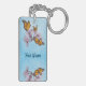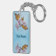 Smör och blommar i en blå bakgrund, nyckelkedja för personlig.