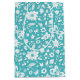 Vitt blommönster med fjärilar på turkobakgrunden.