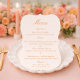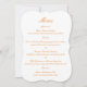 Eleganta die-cut bröllopsmenykort för sofistikerade sommarträdgårdsmottagningar. Med en unik böjd siluett och varm solnedgångstypografi är denna botaniskt tema-meny perfekt för den romantiska finkonstbruden. Dess skulpturala form ger en lyxig taktil element till ditt dukning utan att distrahera från din blomsterdekor. Stil tips: Placera ovanpå en salvia grön laddning tallrik eller para med en torkad smörblomme stjälk.