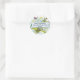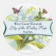 En etikett för tvål, bad och kroppsvårdsprodukter med fjäril och blommor i bakgrunden.