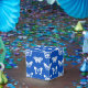 Smörflygskiss, koboltblå och vit presentaskar