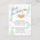 Kakor och kakao könsneutralt baby shower med grå snöflingor och vintergröna träd som gränsar till en tallrik med chokladkakor och en kopp varm choklad