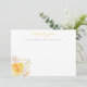 Vackra platta tack-kort för bröllopsfest med gula och mjuka rosa blommor och "tack" i gul handskriven stil. Anpassa med ditt namn - den blivande fru.