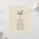 Hjälp dina gäster att hitta sitt bord med dessa eleganta moderna sittplanskort med gästernas namn. Dubbelsidiga kort så att gästerna kan leta från både framsida och baksida efter sina namn. Tydligt utrymme runt omkring ger dig friheten att använda klämmor eller hålslag för upphängningsdisplayer, eller använda bordshållare/ram. Smörbeige bakgrund och svart text. Moderna handskrivna kalligrafidetaljer. Flera färgalternativ. Ha alla bordnummer i samma färg eller blanda färger enligt ditt events färgtema.