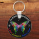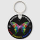Unik och vacker fjäril med autismpussel biet och ett ljus bakifrån som representerar hopp om ett botemedel, och budskapen från "Kärlek, support, advokat". Bära Autism Awareness design för att stödja och förespråka orsaken.