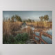 Visar en slav, eller en flod som flyter förbi vildens gräs och träd, tända vid morgonljuset. Ett trästängsel finns i förgrunden. Hela scenen visas i nästan storybooktoner.