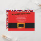 Inbjudan med närbild på tomtens röda kostym med svart bälte på framsidan. Tomtemönster på baksidan av kortet. Se alla mina butiker på https://bit.ly/SandyspiderStores