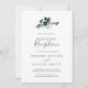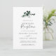 Denna bröllopsinbjudan med smaragdgrön växtlighet är perfekt för en boho-firande efter vigseln. Den eleganta men rustika designen har mörka gröna vattenfärgade blad och eukalyptus med en modern bohemisk skogsstämning. RSVP-kort säljs separat, eller så kan du lägga till RSVP-information på baksidan av kortet.