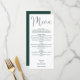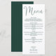 Denna smyckegrön eleganta vigselmeny med skrivstil kan anpassas med all din speciella meny för vigsel dagen, namn och speciella datum. Designad av Thisisnotme©