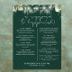 Detta eleganta smaragdgröna bröllopsprogram skylt, med vackra slingor av ljus och blomstergrönska, kan anpassas med din information i chic typografi. Designad av Thisisnotme©