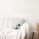 Vacker romantisk kastkudde med smyraggröna och lila blommor och några blad .