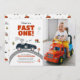 Din baby är snabb! Vänner och familj i inbjudan till en roligt på första födelsedag party med den här roligten vintage bilar och djur illustrerar inbjudan till temat.