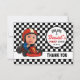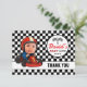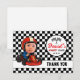 Skicka ett tack med hög hastighet i oförglömlig stil med dessa Fartiga ETT Racingbil Födelsedag Tack-kort! Med en djärv svart-vit rutig bakgrund, en rund etikett med dubbla racingflaggor och djärva ”Fast” (i rött) och ”ONE” (i rutmönstrade bokstäver), har detta kort även en rolig illustration av en racerbilförare där du kan ladda upp ditt barns ansikte för en unik personlig touch!