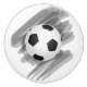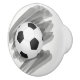 Ta en unik DIY-pekpenna på möbler eller skåp med en knopp som har en svart och vit fotboll över en mörk grått-bläckande bakgrund.