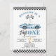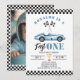Snabb En Blå racerbil Pojke 1-års födelsedagsfoto Inbjudan