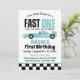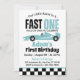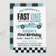 Snabb en blå Tävling-bilpojke 1:a födelsedag Party Inbjudningar