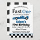 Snabb en blå Tävling-bilpojke 1:a födelsedag Party Inbjudningar