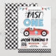 Snabb En Röd Racingbil Pojke 1-års Födelsedagsfira Inbjudningar
